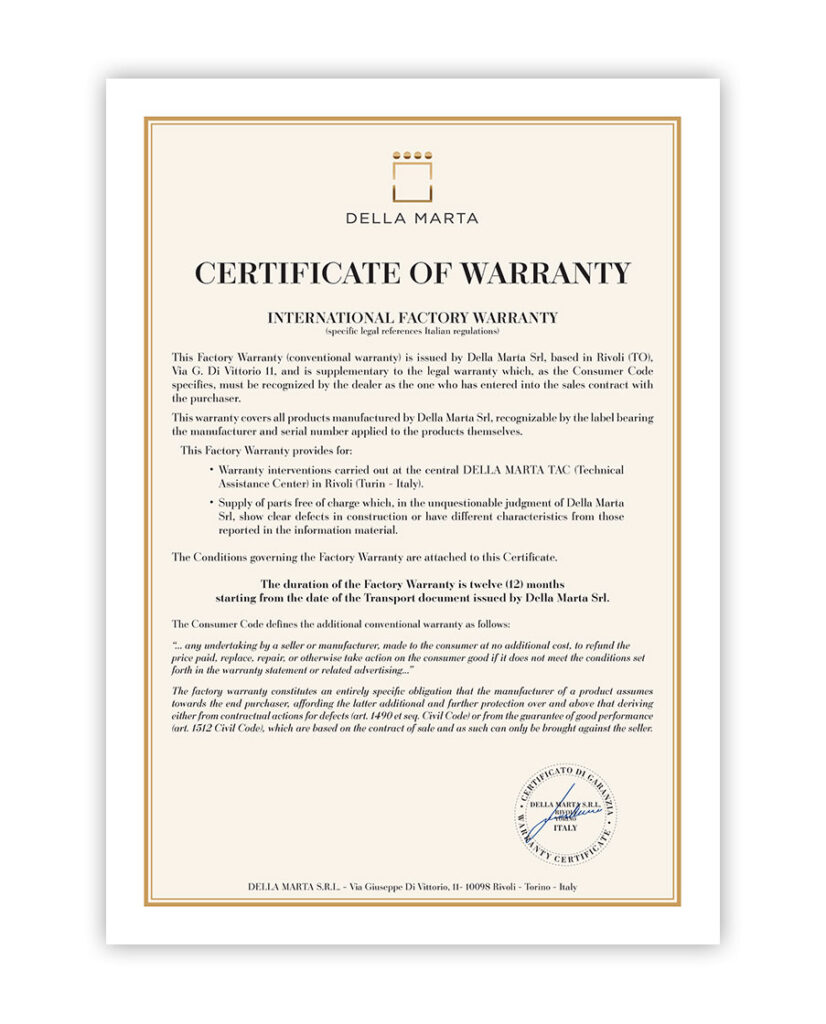 GARANZIA di FABBRICA INTERNAZIONALE